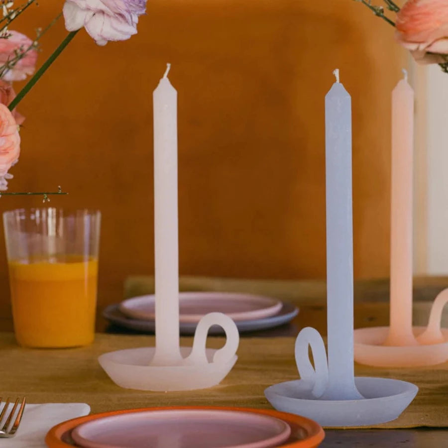 Hand-cast in a studio in Eindhoven, this all-in-one taper and base is made entirely of wax. These candles make a chic addition to any dinner table or mantle.