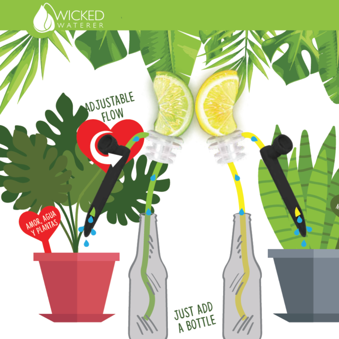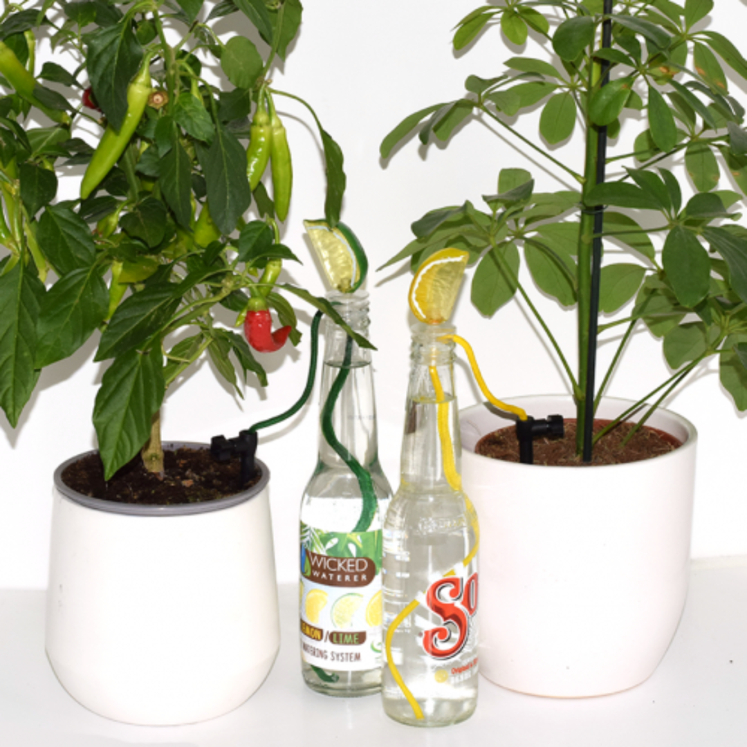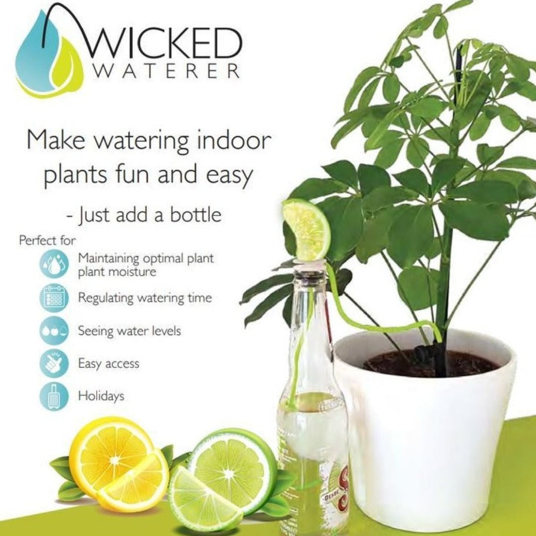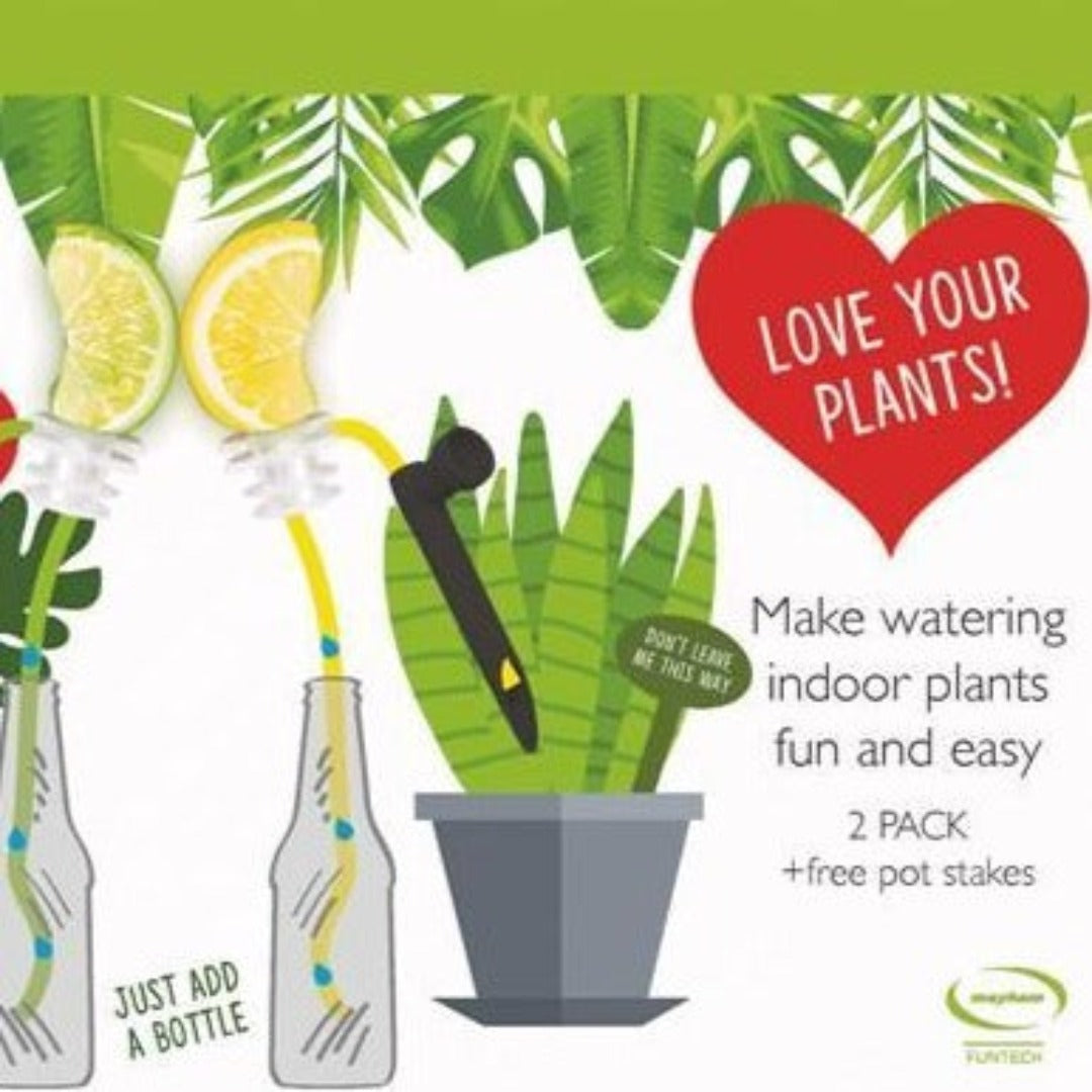 Love your plants! Just add a bottle to create an indoor plant watering system. Wicking cords and fruity bottle topper included along with adjustable flow taps for the pots. Never let your plants dry out again!