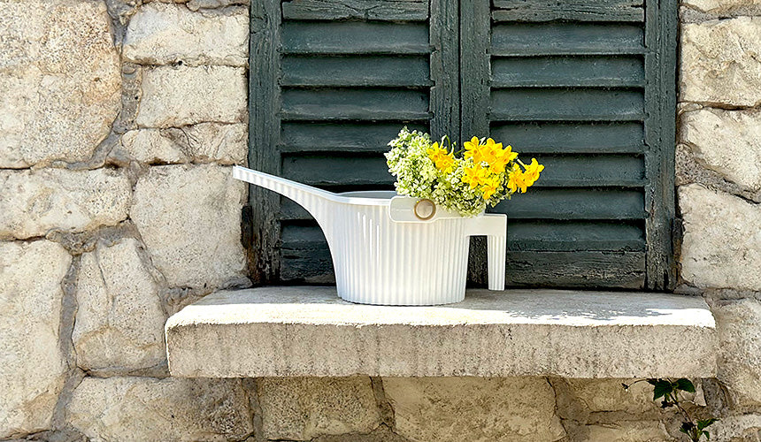 These unique, Japanese-made designer watering cans are a real treat to use. The 1.5L size is perfect for tending to your indoor greenery, while the 5L size is ideal for outdoor watering. Not only are they great to look at, they have been designed with function at the top of mind. The spout features an innovative 'soft sprinkler' structure to create a gentle water stream; the 1.5L Beetle features 3 water streams, while the 5L Beetle features 6 water streams. The beauty of this design is that you don't need a watering can rose - the unique spout distributes water evenly on its own.