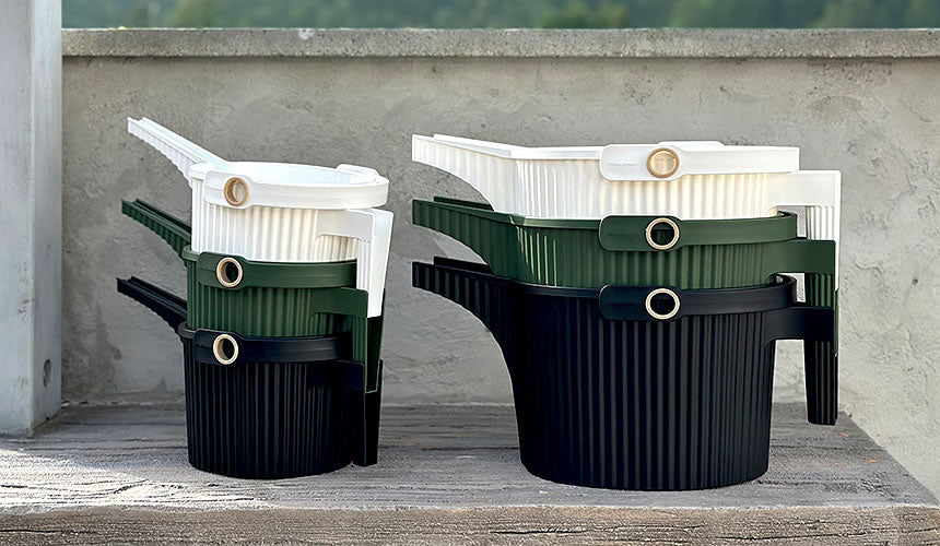 Each Beetle watering can feature an ergonomic handle for ease of use. They are well-balanced and comfortable to hold. The open top design means these watering cans can double as a bucket when needed, and the hose ring built into the handle keeps your hose pipe in place while filling up the can. Crafted from sturdy polypropylene, these cans are built to endure. They can withstand temps as low as -20℃ or a high as 120℃.