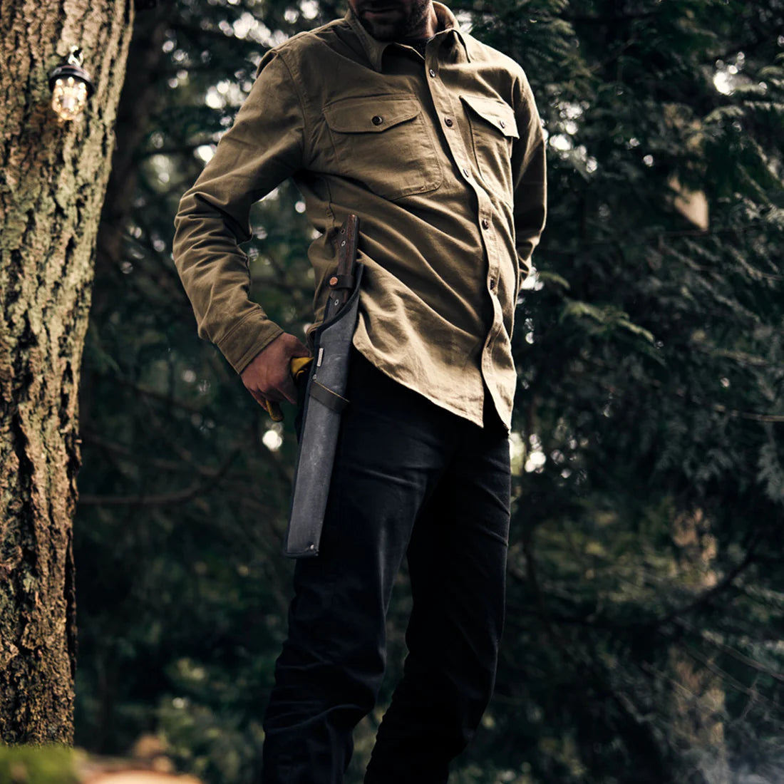 The Nata Sheath is the perfect blend of utility and design, offering robust protection for your Nata Tool. Crafted from durable 900D polyester with an interior liner, it safeguards the blade from dulling during real-world use. A stainless steel belt clip ensures easy carrying and quick access, while the sturdy handle strap keeps the blade securely in place. The open-end design allows for easy cleaning, preventing soil buildup and preserving the blade’s sharpness. Accented with full-grain leather and copper, it beautifully complements our Woodsman Collection.