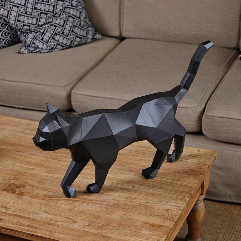 Often considered symbols of bad luck when they cross your path, black cats get a bad rap. Subtle and mysterious, our black cat paper craft is just the decoration you need to honor your favorite feline friends.