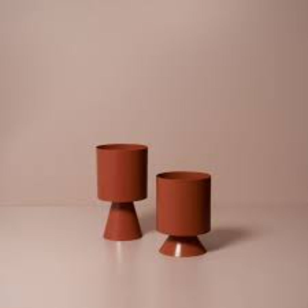 The architectural Palm Springs planters, crafted in powder-coated spun metal explore the relationship between the natural and built environment through colour and form. Ideal for indoor and outdoor use.