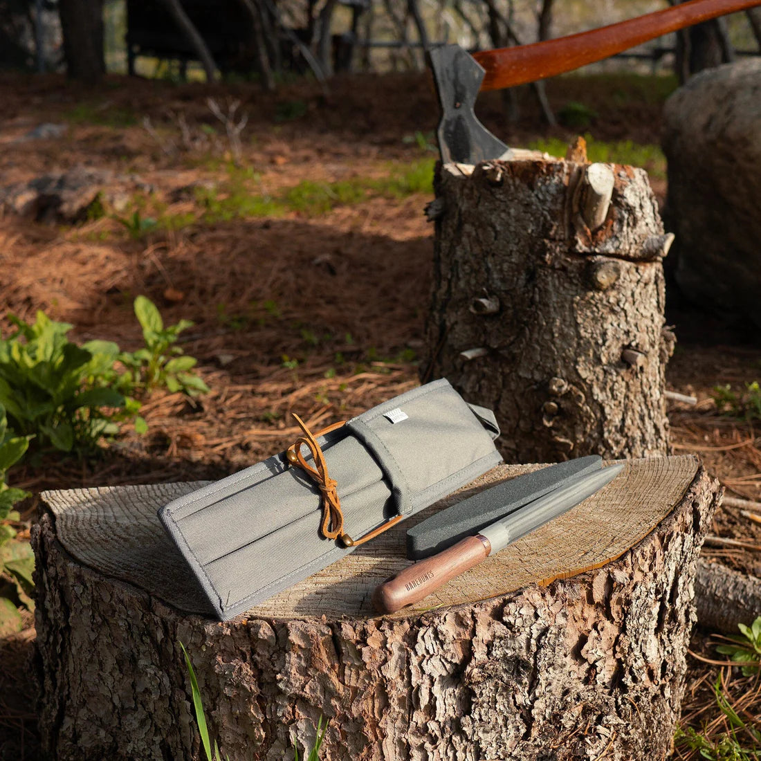A great set containing two universally used sharpeners that can accomplish most tasks. Named after the Swiss inventor and toolmaker F.L. Grobet, the half-round Swiss Pattern file allows for multiple filing jobs, from straight, flat surfaces to curved variable surfaces. It’s also ideal for sharpening and finishing tasks such as deburring or cleaning up edges due to its incredible precision. The Sharpening Stone offers two levels of abrasion: rough/coarse black and smooth gray. Ideal for use with hatchets, axes, garden tools, and outdoor knives/blades that need a working edge. Includes polyester storage and carry case.