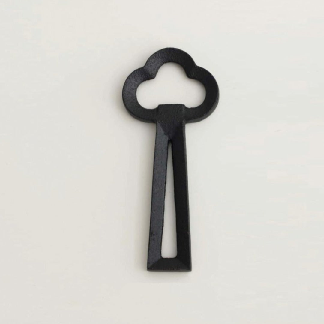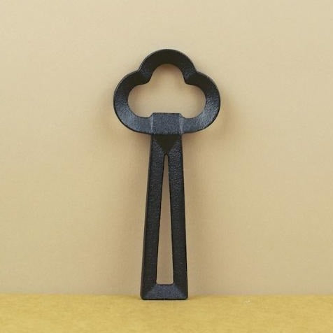 Delightful Clover shaped bottle opener. Finished by baking lacquer on iron casting, and it is characterized by glossy casting skin