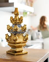Pick them. Mix them. Stack them! Build your own tripartite vase with the loose top, middle and bottom parts from the Stapelgekte collection. Combine different colors and designs to create your very own, unique vase. A tulipiere that shows your personality, which also has many different layers! Just when you think it doesn’t get any better than this, you take your stacked vase apart and you add some new parts for a whole new look. The shiny Delft blue decoration creates a daring contrast against the shiny gold colored background. A fun contrast in which the past and the future enhance each other. You use this part as the center piece of the three-piece tulip vase and all other top and bottom parts from the Stapelgekte collection fit on this part. Every piece can be filled with water, so that every flower gets what it needs to stay fresh for a longer time. Let your creativity run wild and create your own amazing tvase. We would love to see a photo of your own unique creation! Only want one, that is fine too as each piece can be used on its own and look fabulous too.