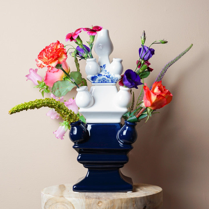 Pick them. Mix them. Stack them! Build your own tripartite vase with the loose top, middle and bottom parts from the Stapelgekte collection. Combine different colors and designs to create your very own, unique vase. A tulipiere that shows your personality, which also has many different layers! Just when you think it doesn’t get any better than this, you take your stacked vase apart and you add some new parts for a whole new look. This entirely white middle part is used as the center part of the tripartite vase and it matches perfectly with all our other top and bottom pieces of the Stapelgekte collection. A white element in your vase adds serenity, simplicity and elegance and makes other, more colorful pieces, stand out even more. Every piece can be filled with water, so that every flower gets what it needs to stay fresh for a longer time. Let your creativity run wild and create your own amazing tulip vase. We would love to see a photo of your own unique creation! Only want one, that is fine too as each piece can be used on its own and look fabulous too.