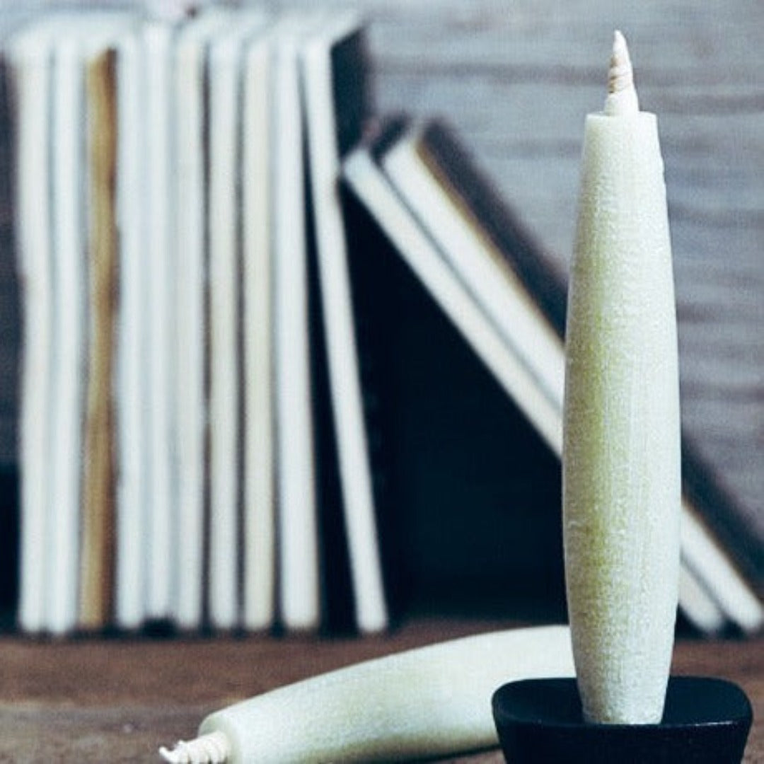 Depending on the soil of the Haze tree cultivation area, and the year of wax accumulation, Takazawa Candles result in a variety of soft colours. The beautiful white powder appearing on the surface of each candle is a reliable proof of the natural material contained within.